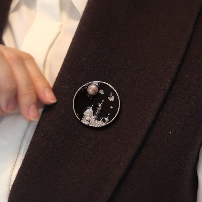 Fashion Vintage Florence Pearl Enamel Brooch -